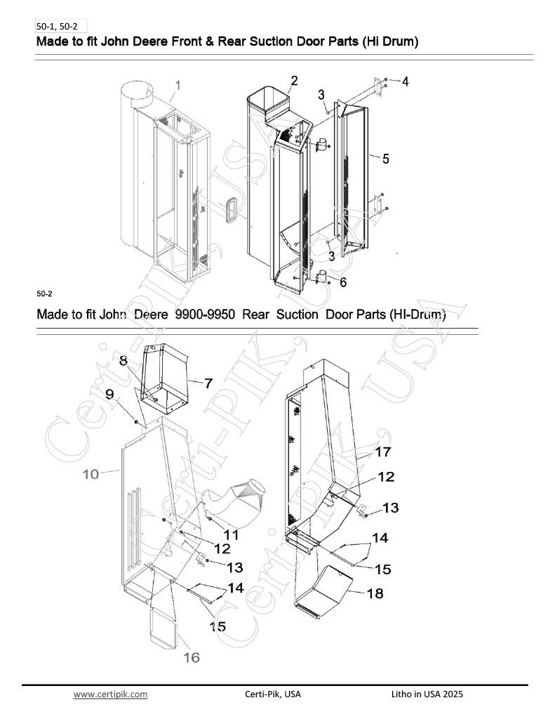 10.2 – #14217L Description: NA – DOOR – L.H. REAR H-D SUCTION DOOR (9900-9930) OEM Part: AN114217 Section: Air System Made to fit John Deere Front & Rear Suction Door Parts (Hi Drum) Out of stock SKU: 2fd61f90b19b Categories: 14217L, Air System, Air System-220, John Deere Air System, John Deere Front & Rear Suction Door Parts (Hi Drum), John Deere Front & Rear Suction Door Parts (Hi Drum)-John Deere Tag: 27P1.pdf Assembly Drawing Description Download PDF More Made to fit John Deere Front & Rear Suction Door Parts (Hi Drum) Parts for this Assembly 1.1 - #90796R 1.2 - #90797L 10.1 - #14216R 11 - #01774P 12 - #14820P 13 - #10217P 14 - #00206P 15 - #34602 16 - #18875 17.1 - #14826R 17.2 - #14827L 18 - #90589 2.1 - #91116R 2.2 - #91117L 3 - #01893P 4 - #10217P 5.1 - #91122R 5.2 - #91123L 6 - #92933 7.1 - #92718R 7.2 - #92719L 8 - #71292P 9 - #10213P